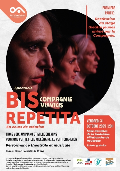 Ouest Aveyron Communauté a le plaisir de vous inviter au spectacle « BIS REPETITA » (en cours de création) de la compagnie professionnelle Viavicis le vendredi 31 octobre à 20h à la Salle de la Madeleine à Villefranche-de-Rouergue. Trois voix, un piano et milles chemins pour une petite fille millénaire, le Petit Chaperon Rouge « Il était […]