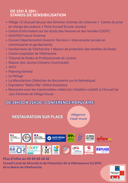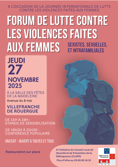 Le Conseil Local de Sécurité et de Prévention de la Délinquance (CLSPD) de la ville de Villefranche, dont le Point Info Seniors est partenaire, organise le 1er Forum de Sensibilisation dans le cadre de la Journée internationale de Lutte contre les Violences faites aux Femmes.