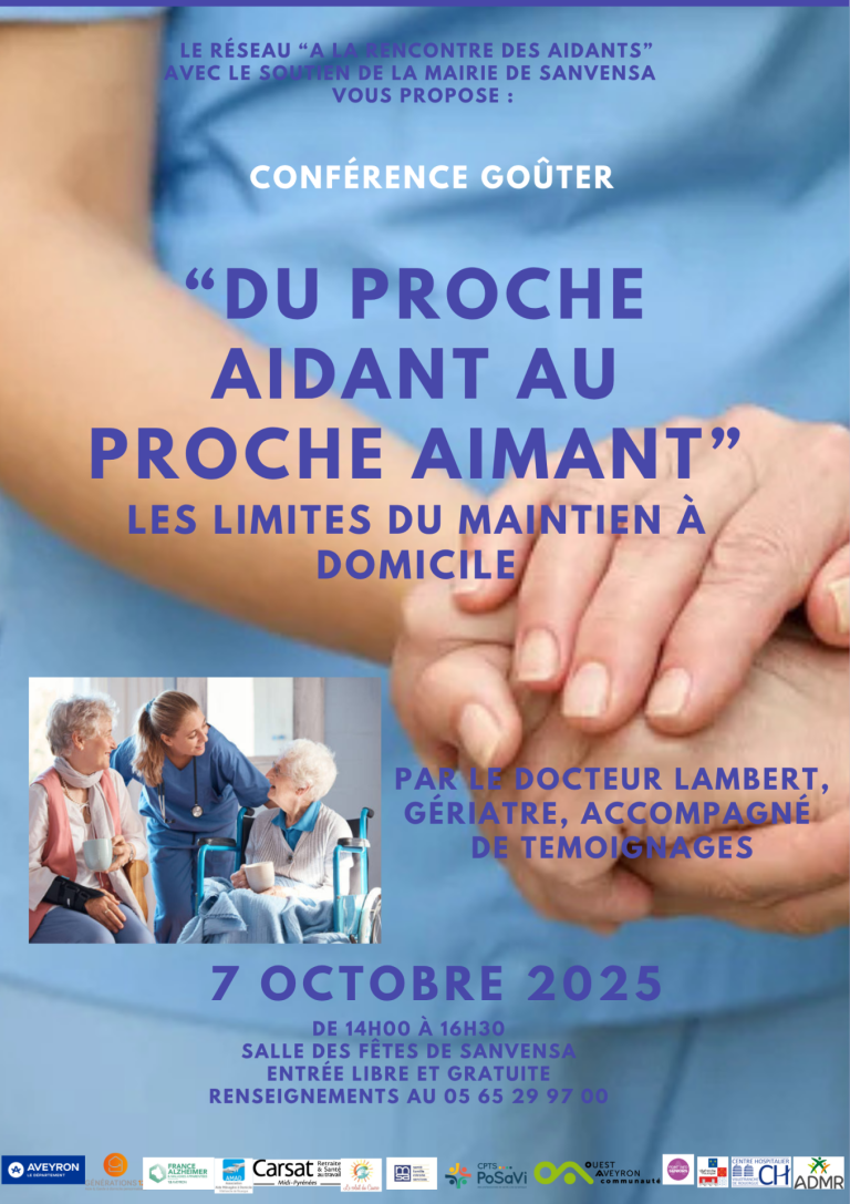 - Le réseau de professionnels « A la rencontre des aidants » vous invite à sa conférence annuelle le mardi 7 octobre 2025, à 14h, à la salle des fêtes de Sanvensa.