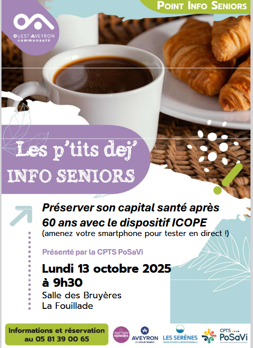 - Le P’tit Déj’ Info Seniors lundi 13 octobre à 9h30, à la Salle des Bruyères de La Fouillade.
